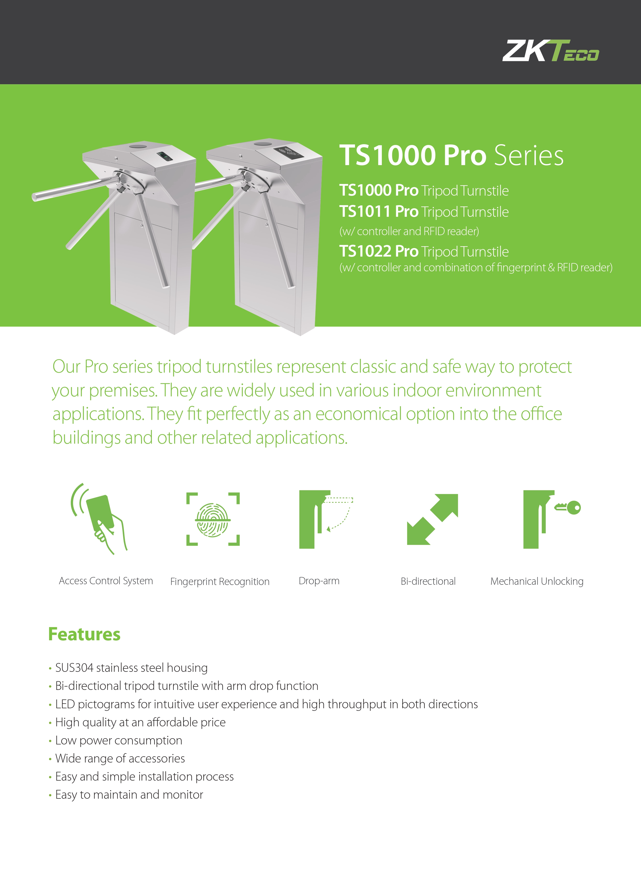 ประตูกั้นทางเดิน ZK Tecko รุ่น TS1000 Pro Series