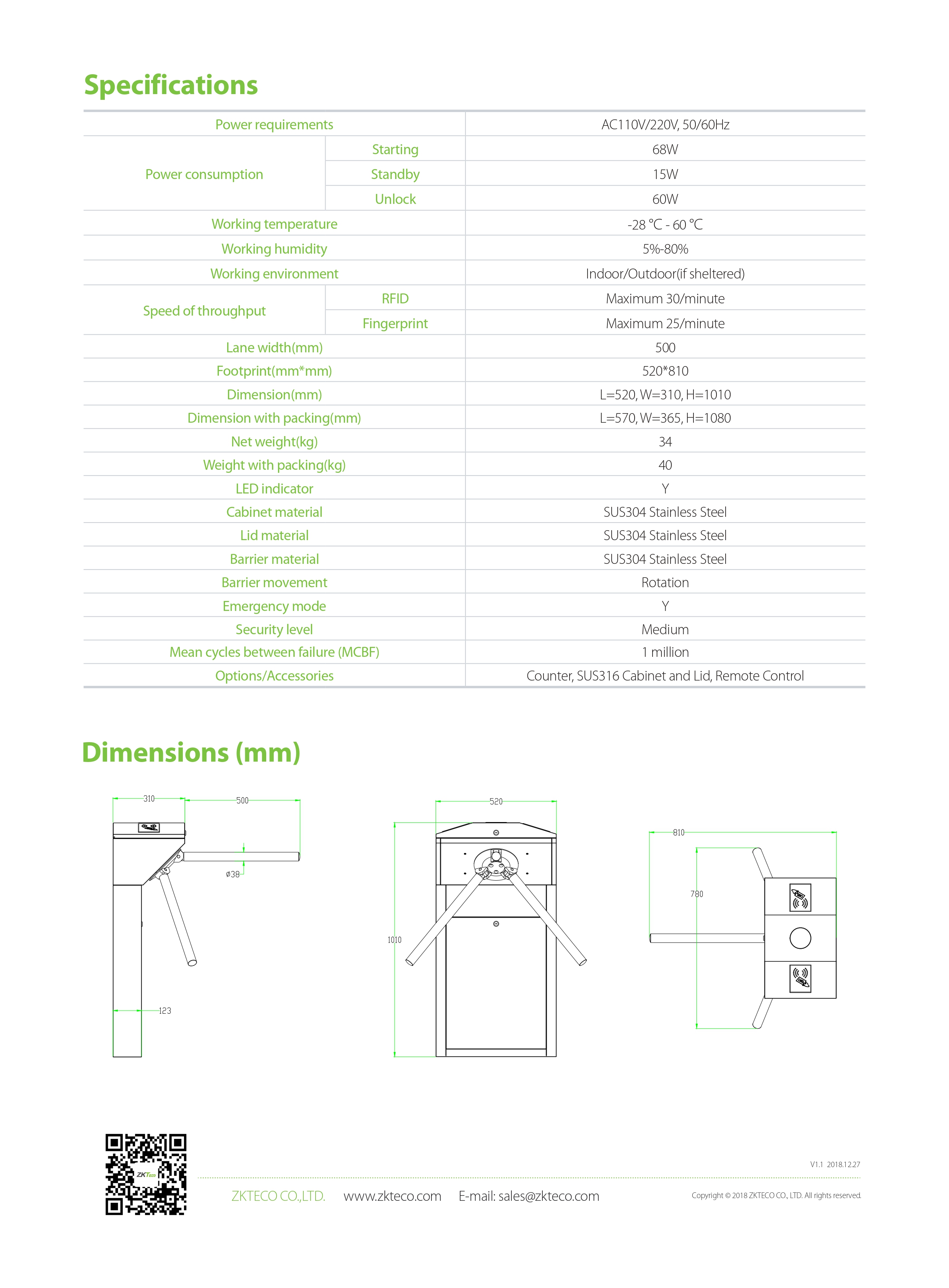 | Footprint(mm*mm) | 520*810 | |