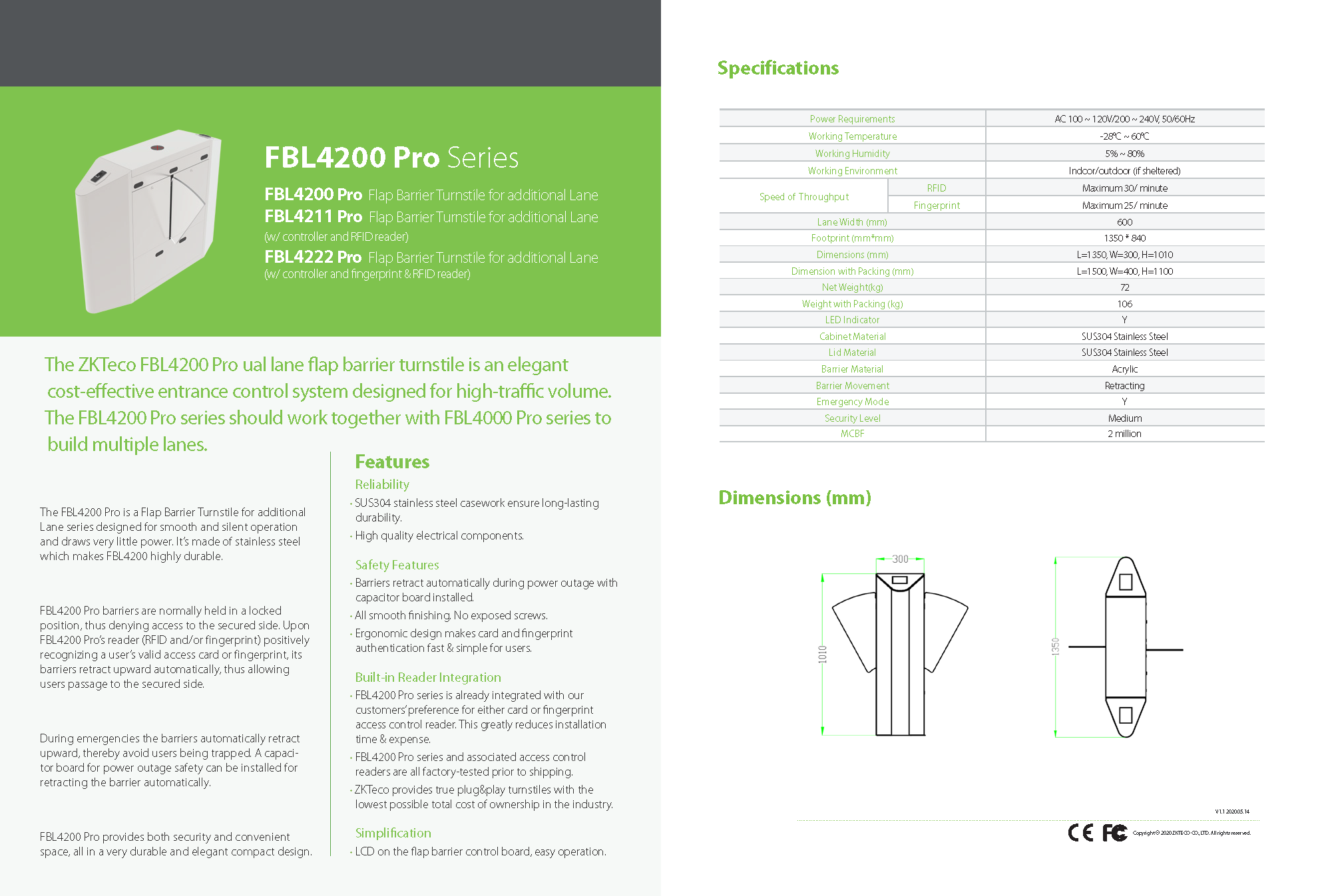 ประตูกั้นทางเดินรุ่น FBL4200 PRO