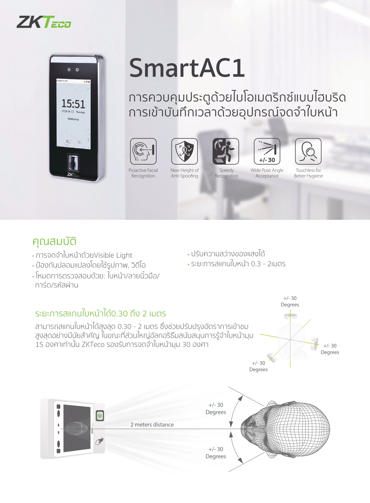 ระยะการสแกนใบหน้าได้ 0.3 - 2เมตร