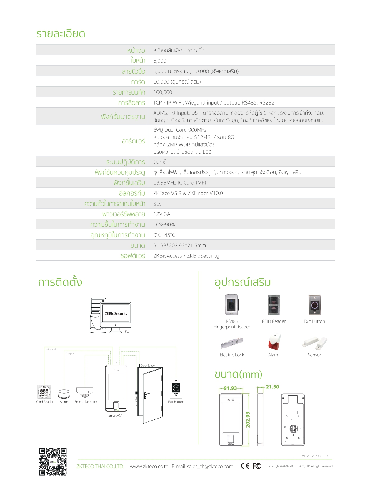 เครื่องสแกนใบหน้ารุ่น SmartAC1
